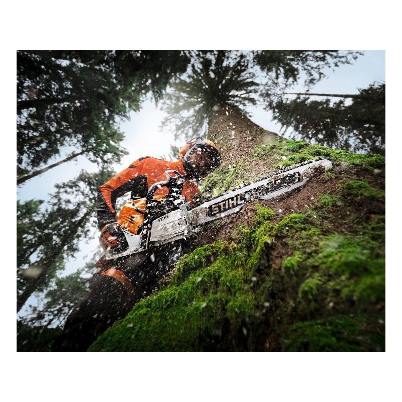 Première tronçonneuse thermique dotée du système d'injection électronique STIHL, la MS 500i dispose du meilleur rapport poids/puissance du marché. Elle convient parfaitement à l'abattage et au façonnage de gros bois grâce à sa structure légère et à une excellente accélération. Elle dispose d'une griffe d'abattage optimisée, un filtre HD2 avec un très bon rendement de filtration, des écrous imperdables sur le cache pignon, une pompe à huile haute performance à débit réglable pour une capacité de débit élevée et une ouverture/fermeture sans outil des bouchons de réservoir pour faire le plein facilement et en toute sécurité.