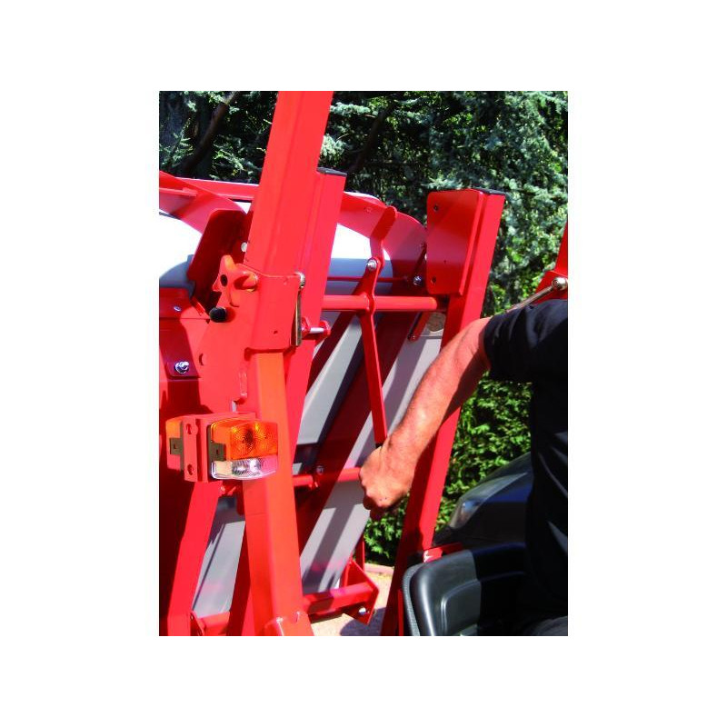 Collecteur à vidange au sol muni d'un container en matière composite pour une meilleure résistance aux chocs, et à la corrosion. La vidange de l'herbe est commandée depuis le siège du tracteur en actionnant un levier. Il s'adapte aux tracteurs compacts de 17 à 25CV munis d'un attelage 3 points et d'une prise de force arrière.