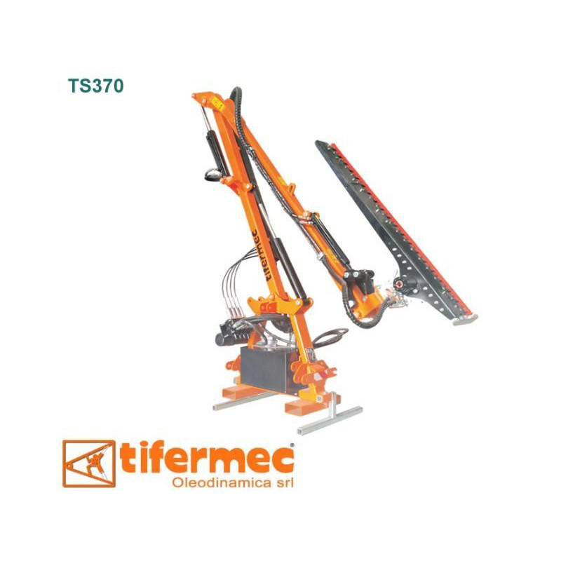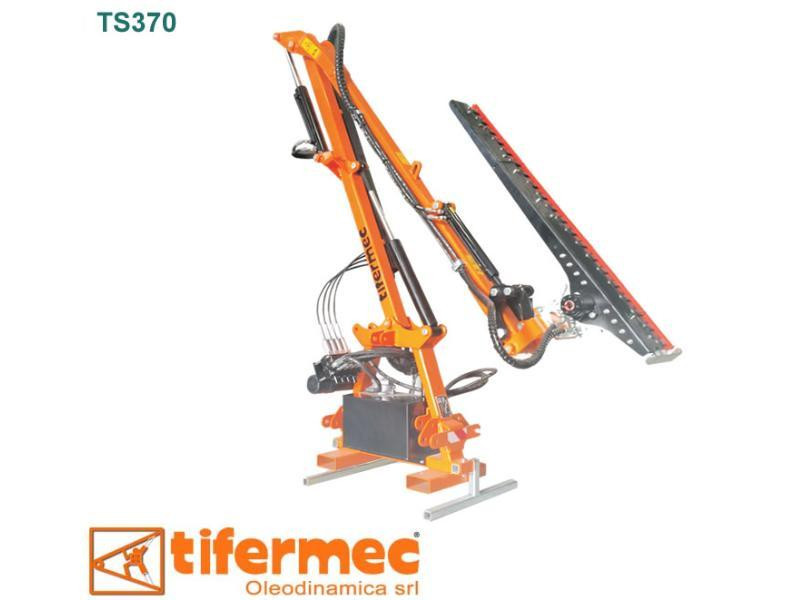 Bras hydraulique avec barre de coupe pour la taille de haies et d'arbustes. Il dispose d'une simple commande de la rotation du deuxième bras qui permet de travailler aussi bien à droite qu'à gauche du tracteur. Son châssis réversible innovant permet le montage de la machine aussi bien à l'arrière qu'à l'avant du tracteur sans modification spéciale.