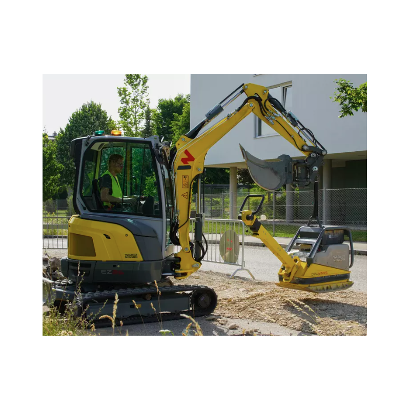 Pelle sur chenilles Zero Tail, puissante et polyvalente. Elle garantit une flexibilité et une convivialité exceptionnelles et son faible poids permet de la transporter avec son équipement sur une remorque de voiture. Elle offre un large champ de vision depuis la cabine pour renforcer la sécurité de l'opérateur et de l'environnement sur le chantier, mais aussi une puissance élevée et un grand confort d'utilisation grâce à un accès large, au système de commande jog dial et à l'écran qui présente clairement les informations.