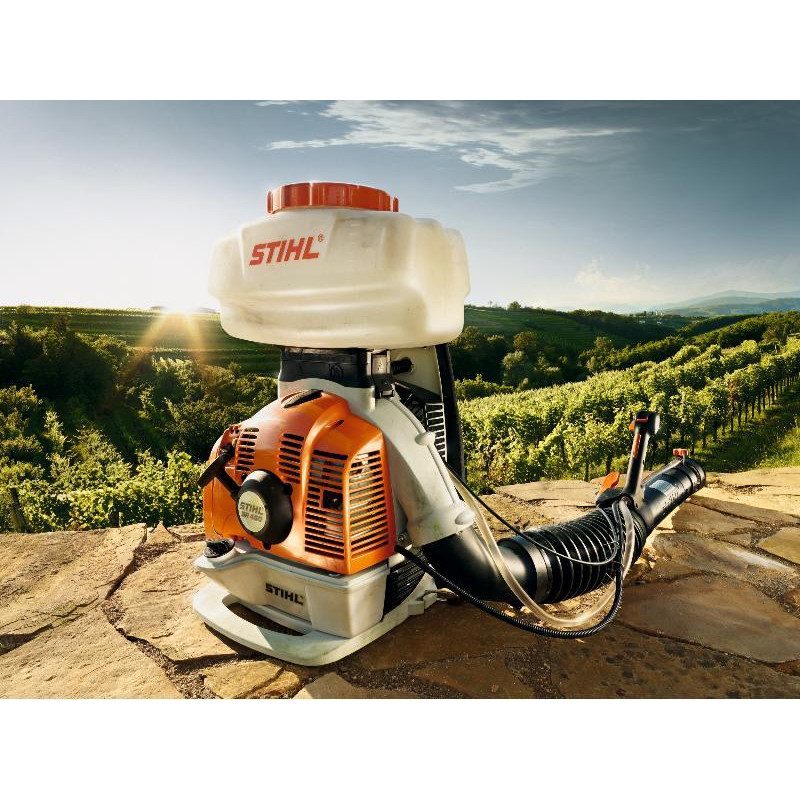 Atomiseur thermique avec dispositif de pulvérisation de liquide et de poudre à très longue portée. Son réservoir grand volume permet de travailler plus longtemps et son système ErgoStart facilite le démarrage.