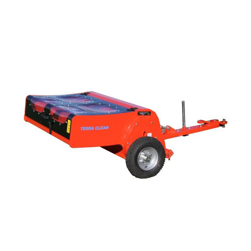 Le TERRA CLEAN 100 est conçu pour le nettoyage en surface des pelouses synthétiques ballastées. Il ramasse les débris à l'aide d'un balai constitué de 4 supports de brosses, tout en véhiculant les déchets et en partie également le ballast superficiel sur un crible. Les détritus son séparés du ballast réutilisable pour être recuillis et le ballast est reconduit directement à l'issue du criblage dans les fibres du gazon synthétique. L'entrainement est indépendant des roues et assure une efficacité de balayage et de criblage homogène et intense même dans les virages. Enfin, la machine dispose d'un réglage centralisé de la hauteur, position de transport incluse, permettant de déconnecter automatiquement l'entrainement du crible et du balai.