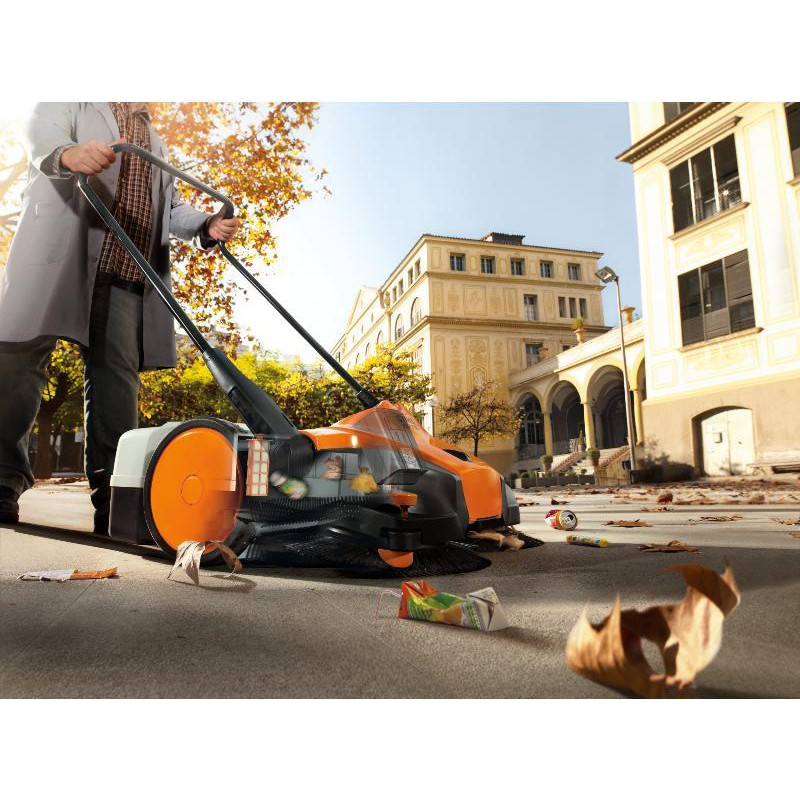 Balayeuse à batterie conçue pour nettoyer jusquà 2000m² de surface. Grâce à la batterie les brosses tournent en permanence à vitesse optimale indépendamment de lavancement même lorsque vous êtes immobiles, bloqués par des coins. Pour un rendement élevé à moindres efforts. * Eco-taxe incluse