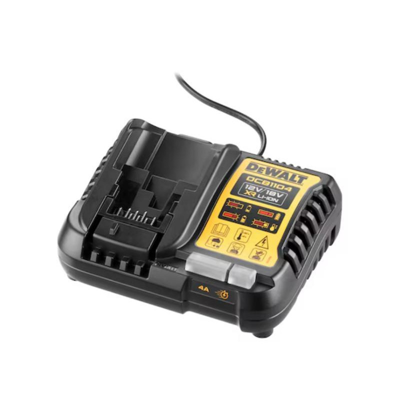 Chargeur avec système de charge à 2 niveaux et indicateur de charge LED. Il est compatible avec toutes les batteries DEWALT XR 10,8V / 12V / 14,4V / 18V Li-Ion.