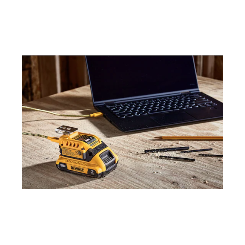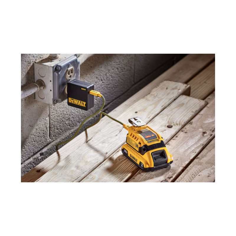 Chargeur portable avec câble USB C PD bidirectionnel pour charger la batterie et utiliser celle-ci comme source d'alimentation pour recharger les appareils mobiles. Comme chargeur, le DCB094 recharge les batteries XR 18V avec un courant de 5A. Comme Power Bank, il fournit jusqu'à 100W.