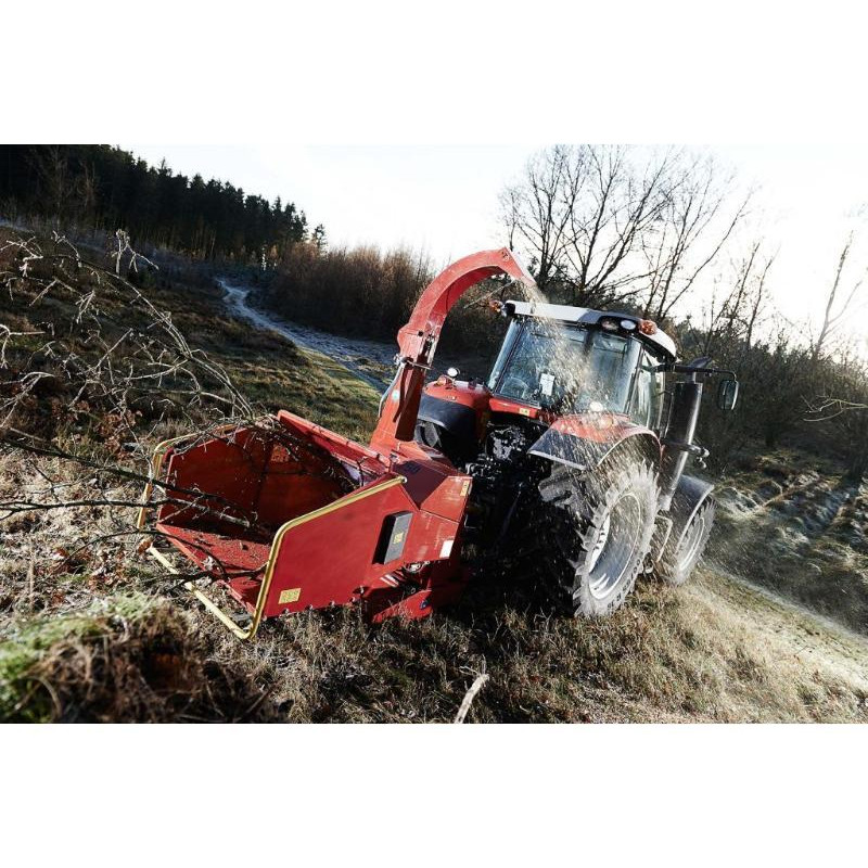 Broyeur de branches derrière tracteur sur prise de force idéal pour la réduction des branches volumineuse et autres végétaux. L'inertie du rotor la rend rapide et performante et les rouleaux d'amenage agressifs ne nécessitent que peu d'effourchage des branches.