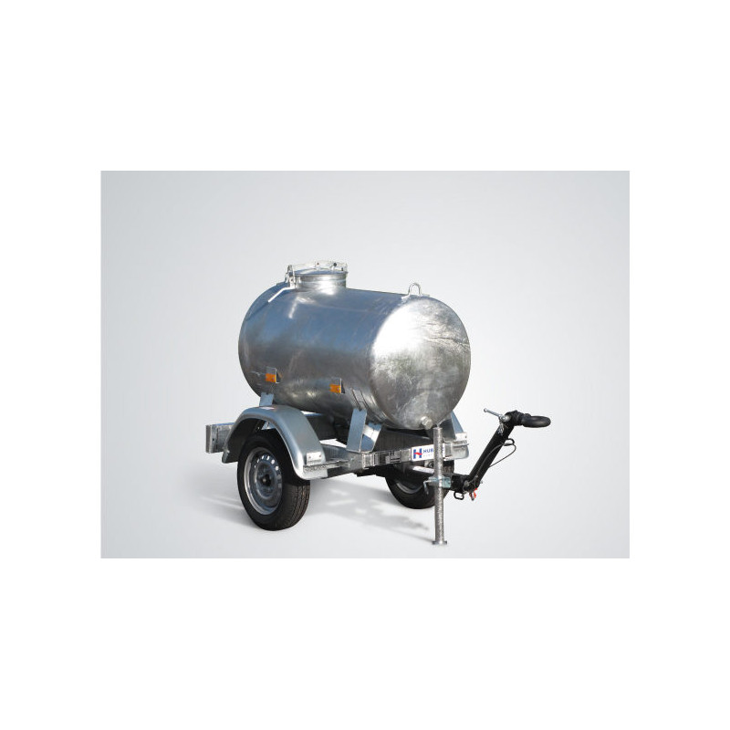 Remorque citerne conçue pour le transport d'eau. Utilisée comme point d'eau fixe ou mobile, elle facilite les opérations de nettoyage, d'arrosage et autre... De conception simple, robuste et fiable, elle est fabriquée sur la base d'un double essieu. Elle est aussi équipée d'une vanne de vidange arrière, d'un trou d'homme de remplissage et d'un timon réglable double articulation.