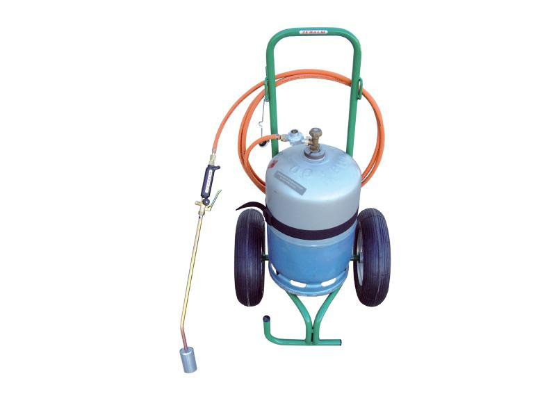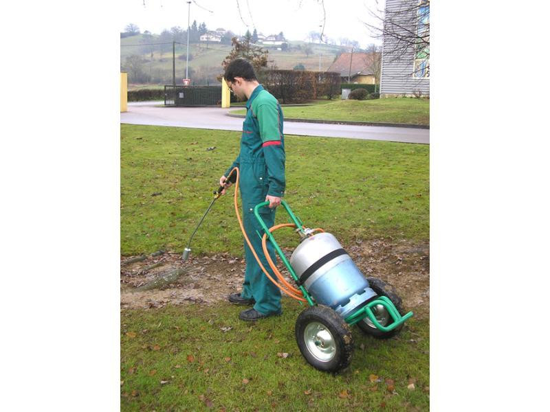 Chariot de désherbage très puissant en usage domestique et convenant également aussi aux usages professionnels (collectivités et paysagistes) et idéal pour le désherbage des espaces verts, jardins, des propriétés d'immeubles, des allées, des pavés autobloquants (surface moyenne). Il est doté d'une lance avec poignée ergonomique à gâchette, d'un robinet de débit et d'un système "veilleuse" pour économiser le gaz. Son chariot à roues gonflées permet de franchir aisément les bordures marches et trottoirs et d'emporter toutes les bouteilles de gaz 13kg propane du marché. Il offre une grande sécurité grâce à son fonctionnement en phase vapeur et tuyère et injecteur grande puissance permettent de l'utiliser aussi en viticulture, arboriculture et maraichage. Cette .....................