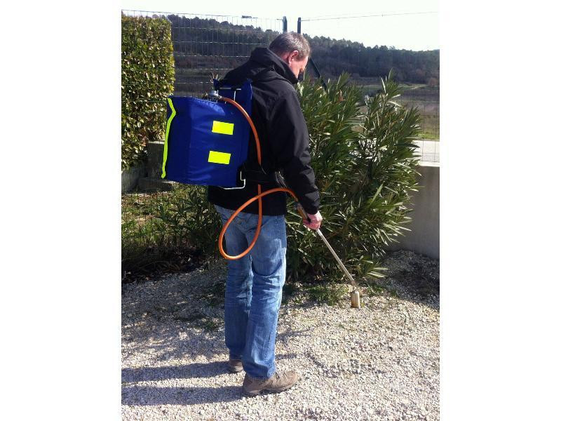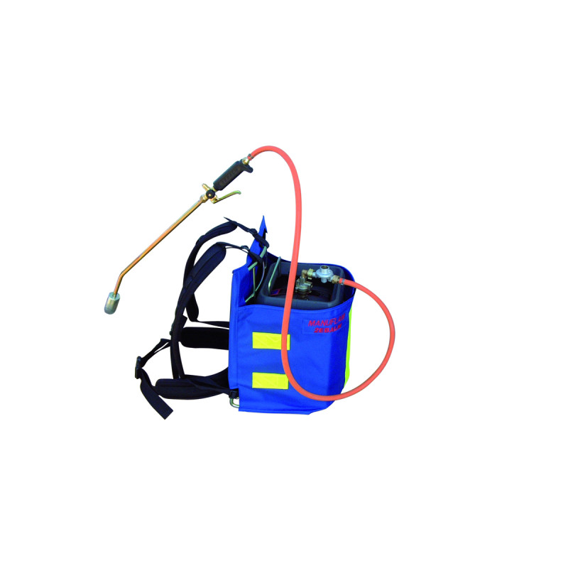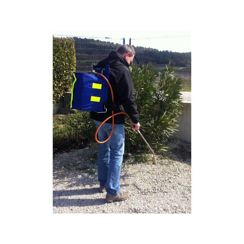Désherbeur thermique à dos idéal pour petites et moyennes surfaces, parcs et jardins, voirie, arboriculture, viticulture, plantes aromatiques et conçu pour désherber les endroits accidentés, les allées, chemins en gravier ou en pierres, pavés autobloquants, jardins, cimetières... Il peut également être utilisé en culture maraichère pour la désinfection en petit élevage. Il dispose d'une poignée ergonomique avec molette de réglage gaz, d'un portage type sac à dos avec harnais pour plus de confort et d'une housse de protection avec bandes réfléchissantes. Ce modèle offre la lance "Security" en inox avec allumage piezo-électrique automatique et sécurité "homme-mort". Cela permet de ne plus avoir de veilleuse évitant ainsi la consommation inutile et permettant une sécurité maximale car le gaz se coupe dès relâchement de la poignée.