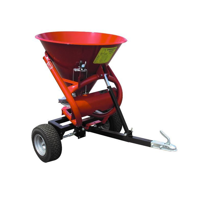 Epandeur tracté avec cuve en acier, s'adaptant derrière tous les petits engins automoteurs. Il permet d'épandre les engrais, le sable ou le sel. La grande largeur de ses roues pneumatiques est parfaitement indiquée pour les surfaces engazonnées. Cest loutil idéal pour les travaux occasionnels ou domestiques. Il dispose d'un timon d'attelage à boule, d'un système d'épandage à disque, de disques et pales en acier, du réglage du débit, du réglage de l'assiette de la cuve et de roues pneumatiques 16x6,5 débrayables par goupille.