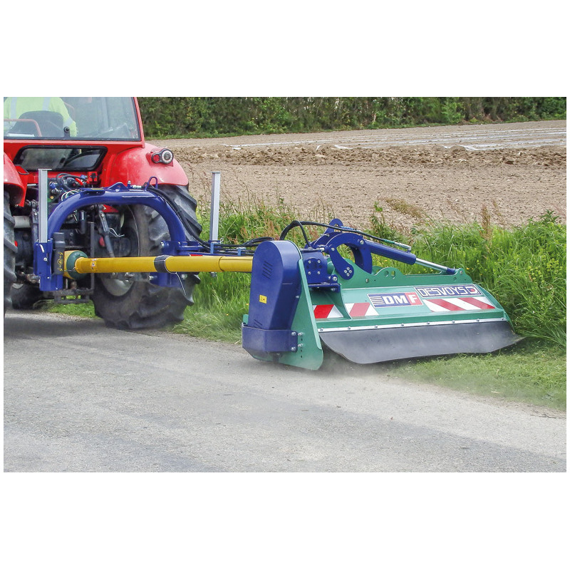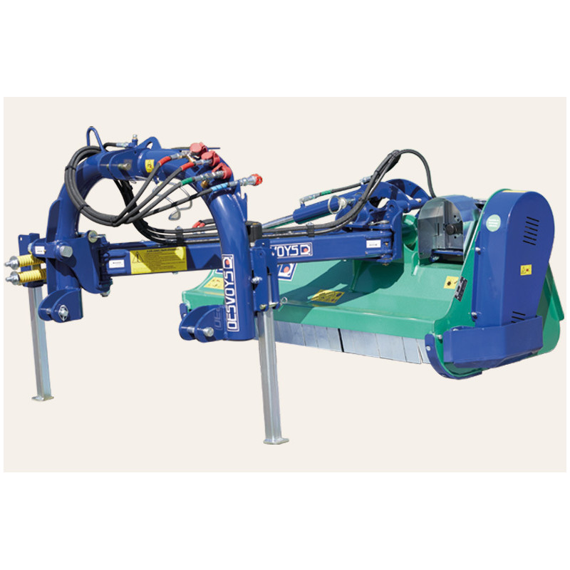 Broyeur d'accotement dimensionné pour le broyage des professionnels idéal pour une utilisation régulière. Il convient au broyage polyvalent et au débroussaillage et son poids restreint lui permet de s'atteler sur les tracteurs de faibles puissance pour préserver une très bonne maniabilité. Il offre un attelage mécano-soudé de forte section et sécurité "NON-STOP" et dispose d'un bras parallélogramme 120x60 mm, d'un suivi du terrain par la position flottante du vérin d'inclinaison, d'un caisson de broyage avec tôle de blindage et d'un patin avec semelle anti-usure boulonnée en HARDOX.