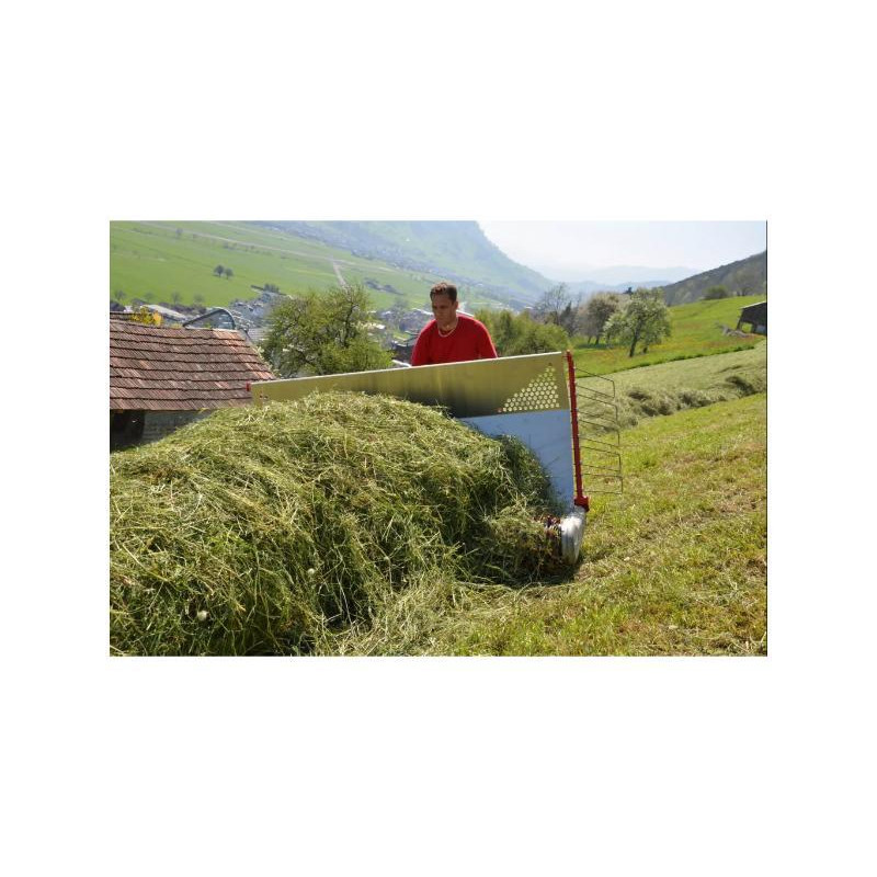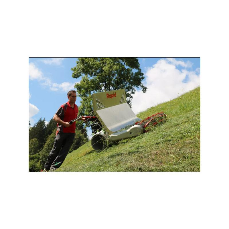 Ramasse-foin pour cellules porte outils conçu pour une utilisation en pente. Il facilite le ramassage et le transport de produuits de fauche secs et l'acheminement vers des zones moins pentues et simplifie le travail par rapport aux méthodes manuelles. Léger, il permet un travail respectueux du sol et dispose de dents flexibles en plastique qui garantissent un ramassage du fourrage propre. Enfin,son dispositif de collecte permet le ramassage et l'évacuation latérale.