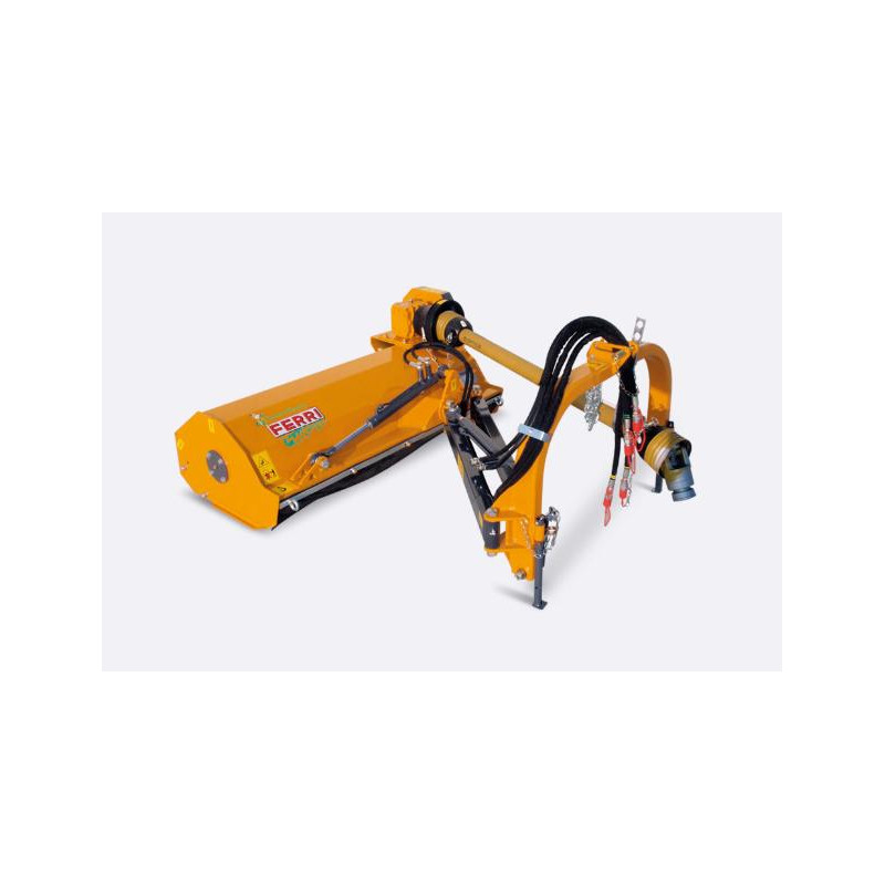 Broyeur d'accotement conçu pour les tracteurs compacts pour l'entretien des parcs et jardins. Il dispose d'un vérin d'inclinaison de la partie coupante,d'un système de rotation et bras du parallélogramme monté sur boucles autolubrifiantes, d'un rouleau d'appui réglable en hauteur en 3 positions,d'une protection avant en caoutchouc anti écorchure et d'un cardan roue libre.