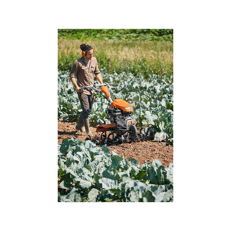 Motobineuse thermique puissante, conçue pour répondre aux besoins des professionnels. Elle est idéale pour travailler la terre sur de grandes surfaces même dans des conditions difficiles et sur sols durs.