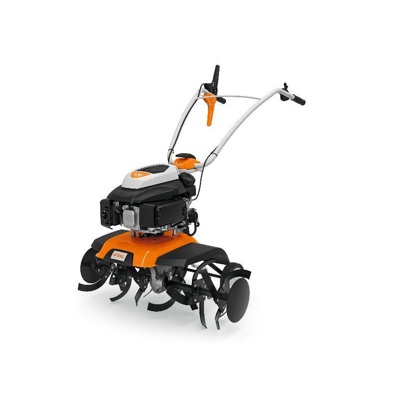 Motobineuse thermique maniable et ergonomique idéal pour un travail du sol sans effort. Elle est équipée de fraises qui offrent une efficacité optimale, de réglages centralisés au guidon, d'un éperon de terrage pivotant à 180° qui permet de déterminer la profondeur de l'insert de sarclage et de binage et qui garantit une vitesse optimale. Elle dispose également d'un système anti vibrations idéal pour le confort, d'une commande d'accélérateur simple et d'une position de nettoyage qui permet de nettoyer, monter et démonter l'appareil plus facilement.