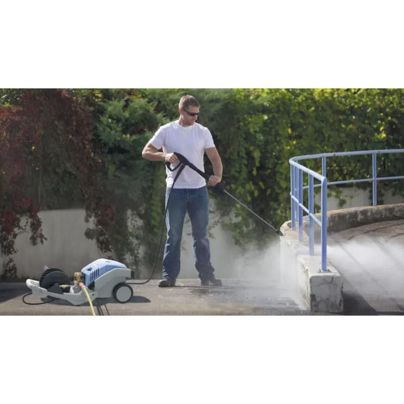 Nettoyeur haute pression électrique à eau froide idéal pour un usage résideniel. Il élimine les saletés tenaces lors du nettoyage d'une allée, d'un patio, d'un vélo, d'une moto ou encore d'une voiture. Ses matériaux durables et ses systèmes de sécurité sont optimaux ; il dispose d'une tête de pompe en laiton de haute qualité et de poussoirs en acier inoxydable revêtu de céramique. Résistant, il offre les caractéristique du K 1050 TS avec l'enrouleur en plus.