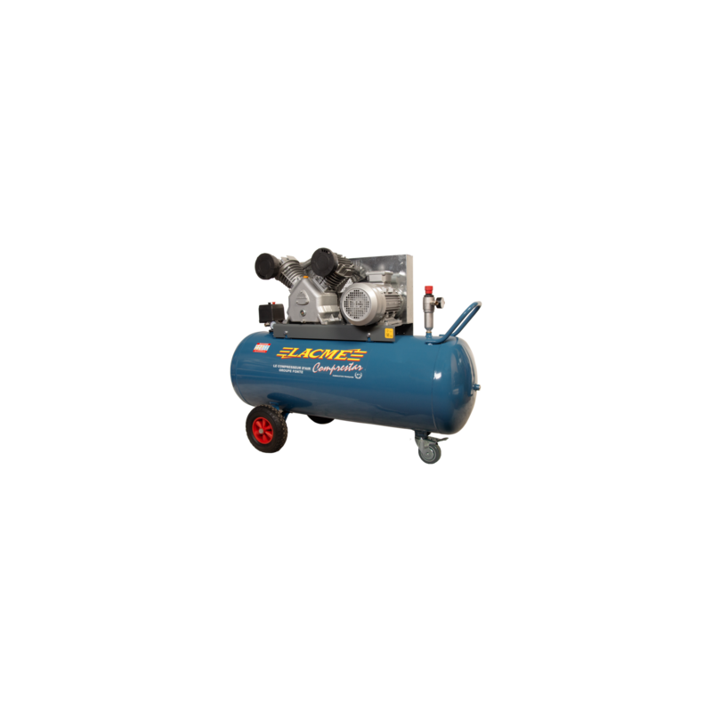 Compresseur professionnel mobile à entrainement par courroie, triphasé. De la série Endurance, il offre une vitesse lente et dispose d'un double brancard,de grosses roues et d'une roue directrice avant avec frein pour un déplacement plus facile. Il a aussi un contacteur disjoncteur, une sortie directe avec raccord rapide et un épurateur détendeur GM avec double sorties.