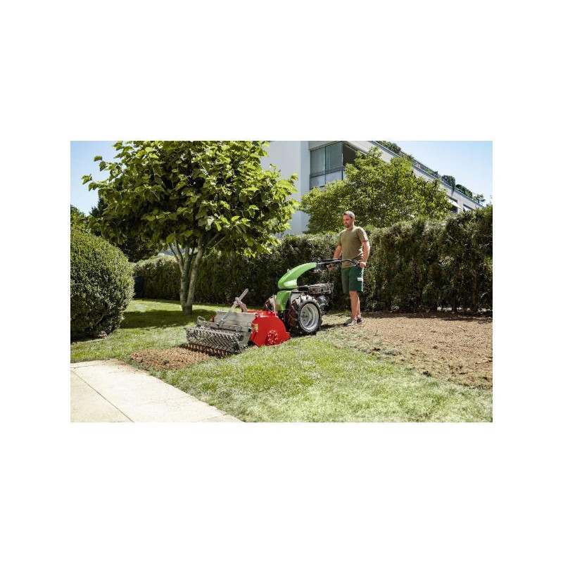 Porte-outils multifonctionnel à un essieu, idéal pour le jardinage et laménagement paysager grâce à lentraînement hydrostatique, aux accessoires qui peuvent être changés sans outils et au guidon rotatif qui pivoter des deux cotés et être retourné vers larrière. Léquilibre est conçu sans compromis pour le travail du sol, ce qui permet un travail facile et sans effort, même pendant de longues journées de travail. Elle offre un fonctionnement simplet et intuitif, un entrainement infiniment variable en fonction régulateur de vitesse, des vitesses de conduite conçues pour les applications de travail du sol, un guidon pivotant,un changement simple et rapide des accessoires sans outils, une large gamme d'accessoires pour les quatre saisons, ......anneaux de sanglage.