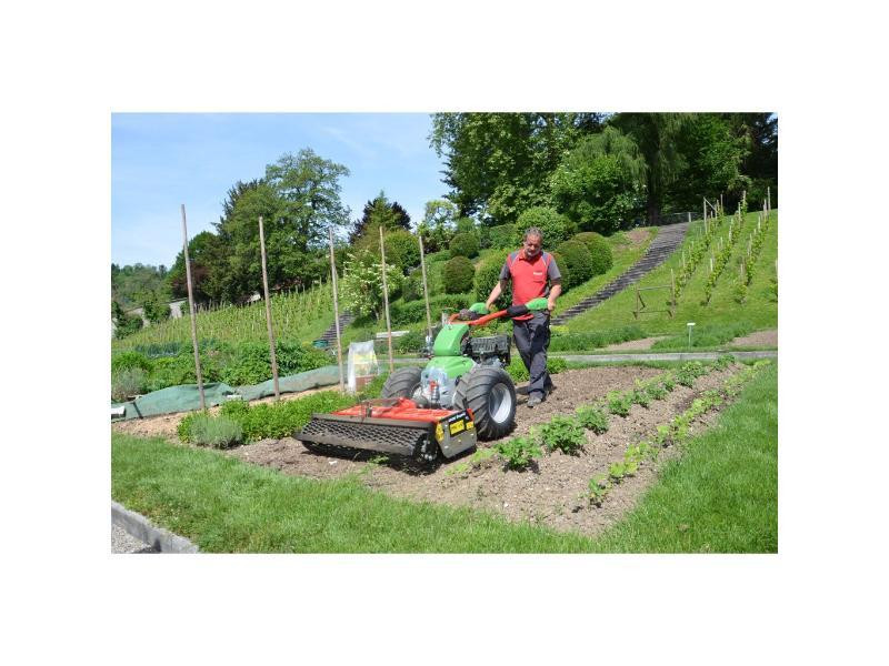 Porte-outils hydrostatique compact et facile à manipuler offrant une direction au choix de l'opérateur par guidon sensitif ou par leviers, une marche avant/arrière progressive commandée par poignée tournante, un attelage des outils par manchon frontal et des commandes d'entrainement et de direction mécanique. Il est compatible avec une large gamme d'accessoires.