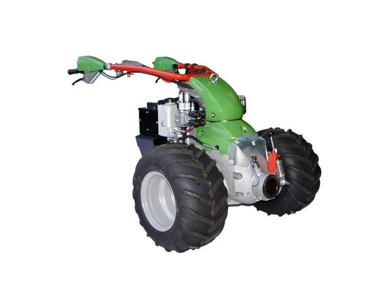 Porte-outils hydrostatique compact et facile à manipuler offrant une direction au choix de l'opérateur par guidon sensitif ou par leviers, une marche avant/arrière progressive commandée par poignée tournante, un attelage des outils par manchon frontal et des commandes d'entrainement et de direction mécanique. Il est compatible avec une large gamme d'accessoires.