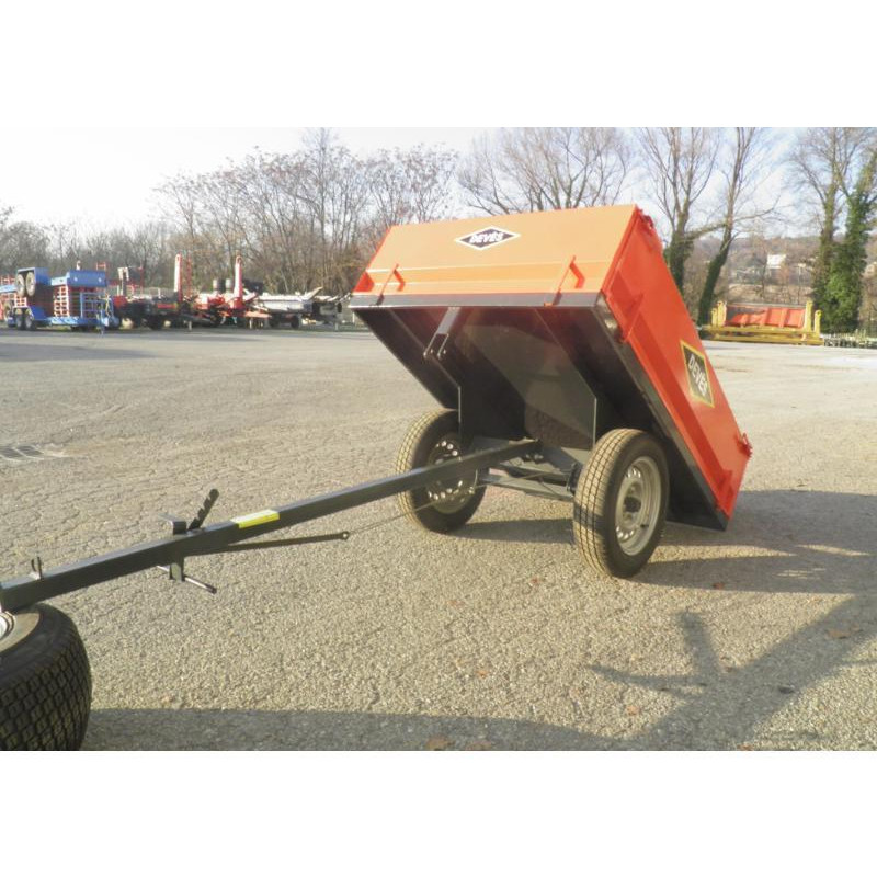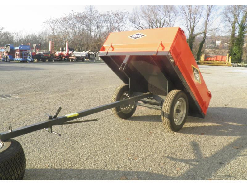 Remorque pour motoculteur avec basculement mécanique, siège réglable, ridelles démontable et attelage.