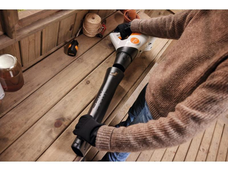 Souffleur à batterie léger, simple à utiliser et polyvalent, idéal pour le nettoyage des petites et moyennes surfaces autour de la maison comme le soufflage de feuilles ou déchets des allées, terrasses ou balcons. Flexible, vous pouvez passer rapidement et sans outil de la buse courte, pour les meubles de jardin par exemple, à la buse longue pour le nettoyage des sols. Léger, il est compact et équilibré et peut travailler plus longtemps grâce à sa batterie interchangeable AS2. Sa force de soufflage est réglable en continu car son potentiomètre permet d'adapter la force de soufflage à l'application souhaitée. Silencieux et facile à ranger, il ne nécessite pas de protection auditive et dispose d'un oeillet de suspension qui permet de ...ni chargeur.