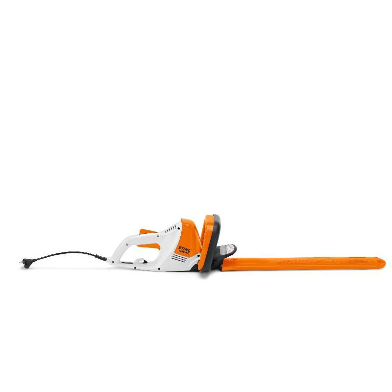 Taille-haie électrique très léger et silencieux. Idéal pour lentretien des haies et des buissons. Protège-mains pour une vue optimisée sur la haie à tailler, frein de lame mécanique, lame à tranchant unilatéral, serre-câble verrouillable.
