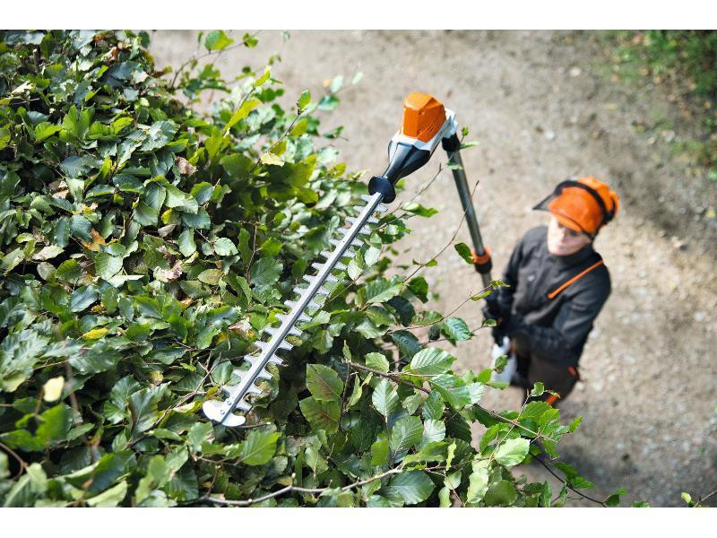 Taille-haie sur perche à batterie professionnel dune grande portée, son manche télescopique peut être étendu jusqu'à une longueur de 330mm. La tête de coupe est orientable de -45° à +70° et permet de de tailler de hautes haies à la verticale, mais également des un maximum de confort. Sa performance de coupe est assurée par lefficacité buissons rampants à l'horizontale avec de son moteur STIHL EC associé à un lamier professionnel de 50 cm à double affûtage. Idéal pour une utilisation dans les zones sensibles au bruit. Livré sans batterie ni chargeur. * Eco-taxe incluse