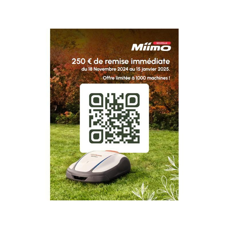 Tondeuse robot totalement autonome pouvant tondre des pelouses de 400 à 4 000m² sans aucune assistance. Doté de technologies innovantes et intelligentes pour un gazon propre et en bonne santé sans effort et tout au long de l'année. Il dispose de capteurs de sécurité qui permettent de détecter les objets ou les animaux pour s'arrêter et changer de direction et offre un micro mulching, un niveau sonore faible, une application bluetooth à l'interface intuitive et simple et une étanchéité qui lui permet de travailler par tous les temps et de le nettoyer au jet d'eau. Le robot adapte sa fréquence de tonte à la saison et à la vitesse de pousse de l'herbe et s'adapte à tous les jardins, même les plus complexes. En ce moment, profitez du kit TCU20E (module de connexion à distance OFFERT et d'une garantie de 5 ANS au lieu de 2. Et, du 18 novembre 2024 au 15 janvier 2025 profitez d'un avoir de 250€ en scannant le QR Code.