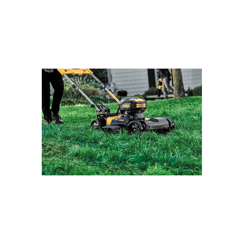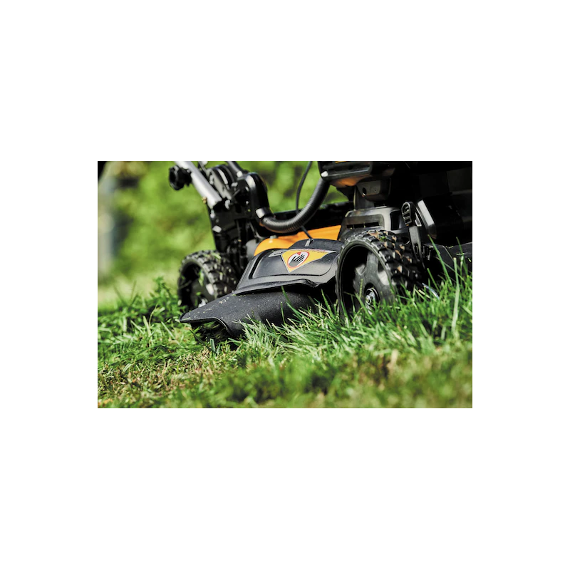 Tondeuse à batterie dotée d'un moteur à entraînement direct sans charbon. Elle est autotractée et dispose d'une technologie innovante à détection automatique qui permet d'atteindre un régime plus élevé afin de pouvoir couper l'herbe plus épaisse en mulching, bac de tonte ou éjection latérale. Enfin, elle possède une poignée rabattable pour un transport pratique et un stockage vertical.