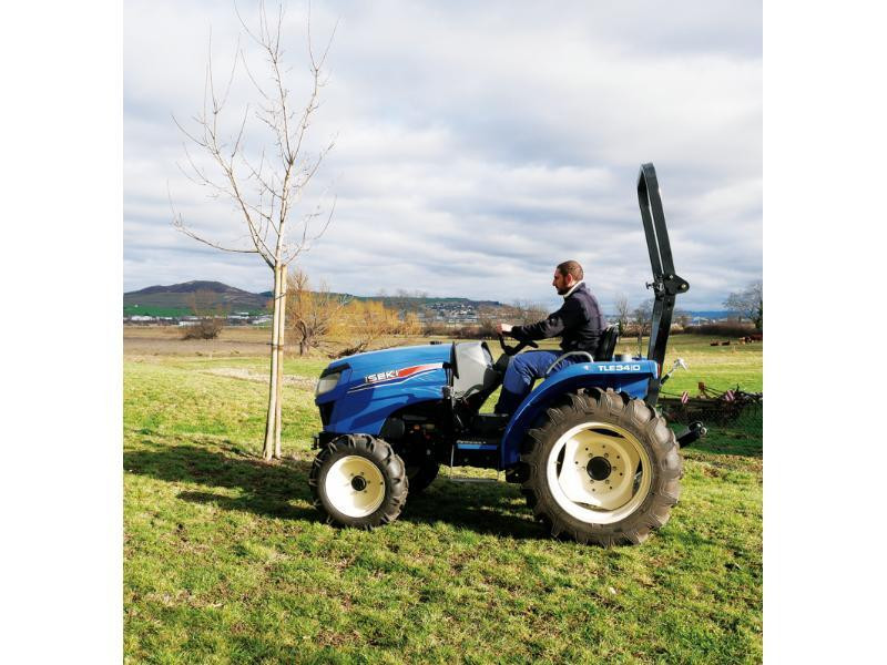 Tracteur équipé d'une transmission hydrostatique souple, efficace et commandée par deux pédales ergonomiques qui permettent de passer de la marche avant à la marche arrière facilement. Ce modèle dispose également d'un arceau arrière.