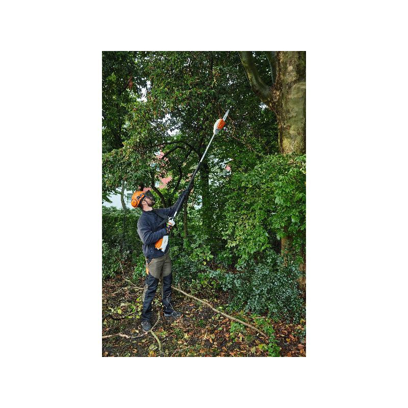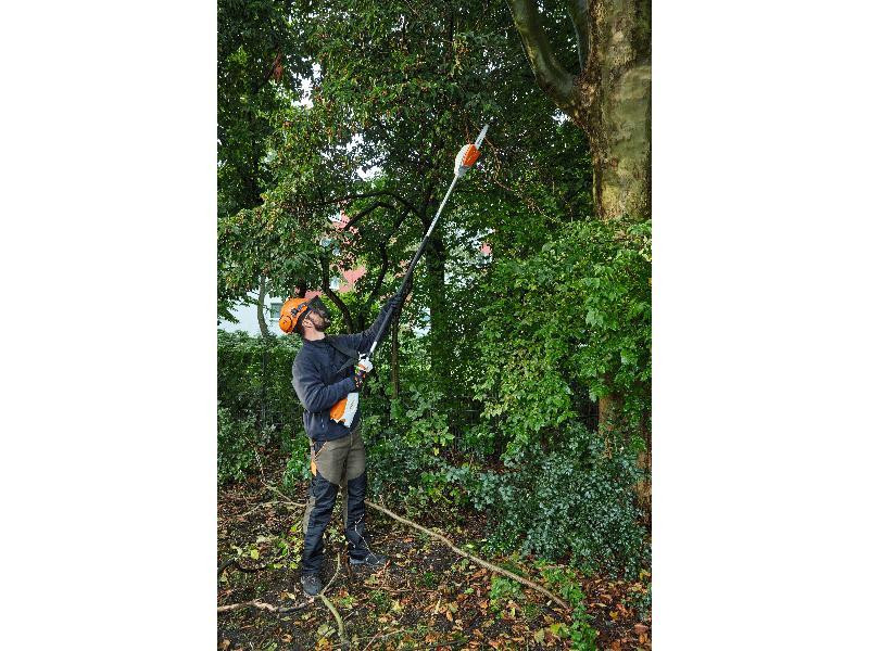 Perche d'élagage à batterie qui permet d'éclaircir la cime des arbres et de couper des branches petites et moyennes depuis le sol. Elle est légère et puissante.